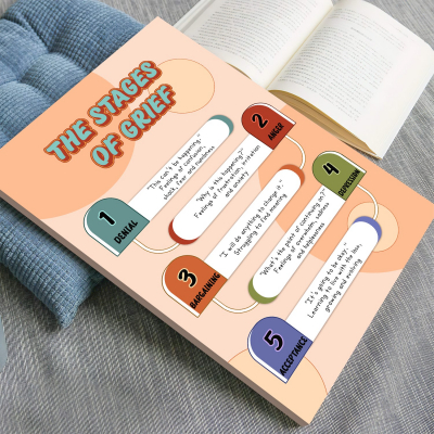 - Comprehensive Visual Guide – Clearly explains each stage of grief, helping individuals understand and process their emotions.