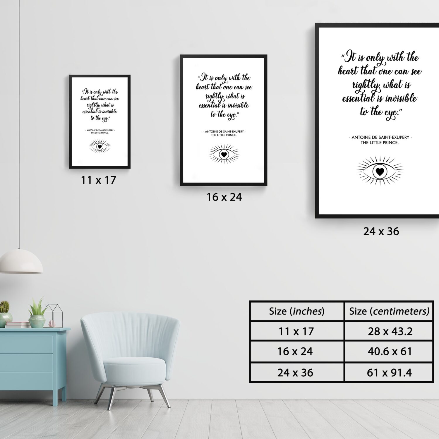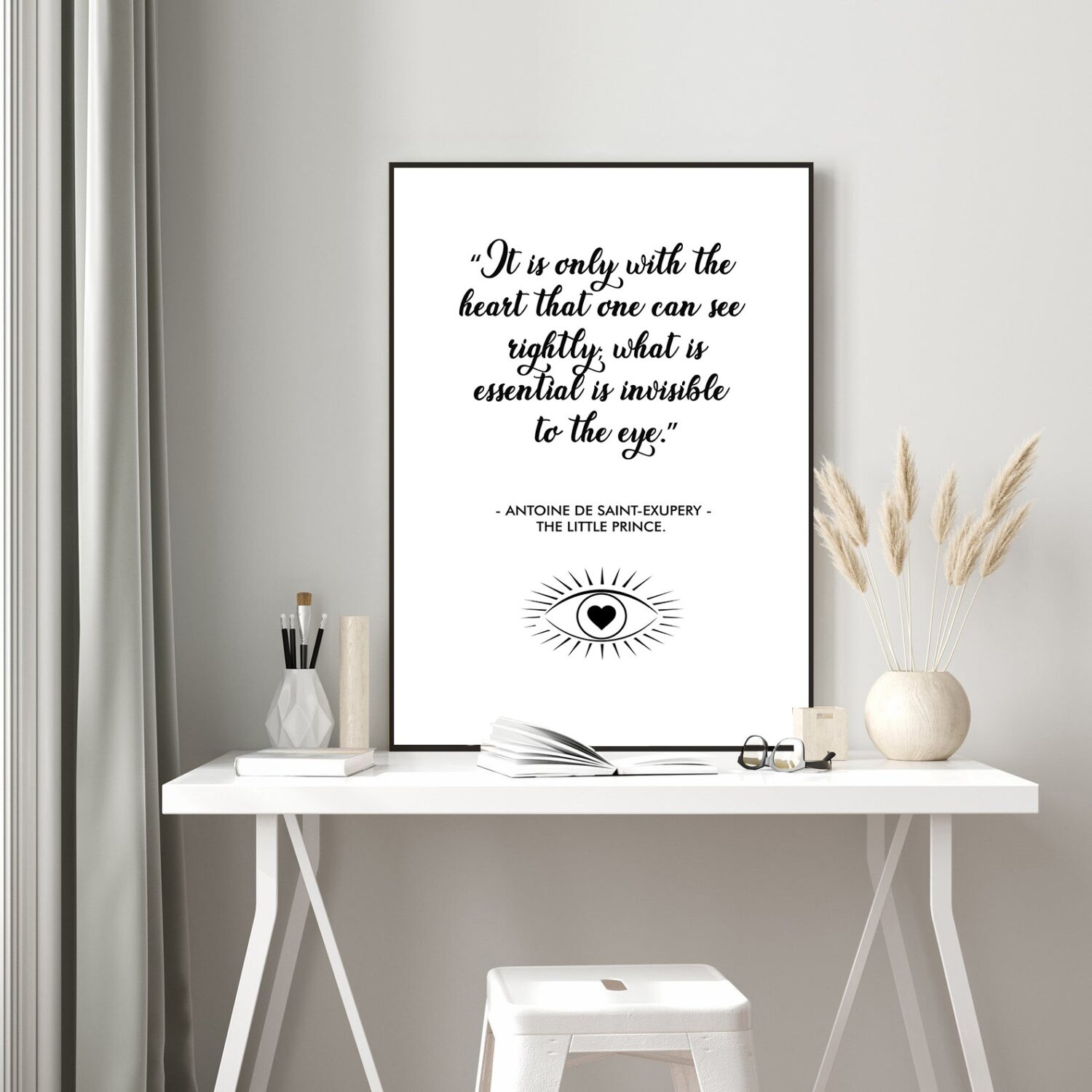 Let the timeless wisdom of Antoine de Saint-Exupéry’s The Little Prince inspire your daily life. This motivational wall art features the iconic quote: “It is only with the heart that one can see rightly; what is essential is invisible to the eye.” A gentle reminder to focus on what truly matters” love, kindness, and inner strength.