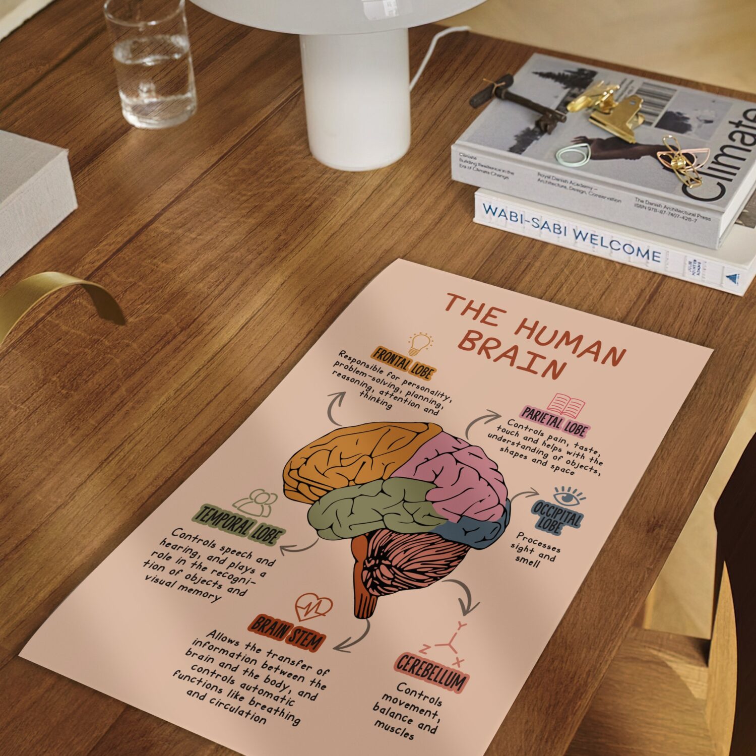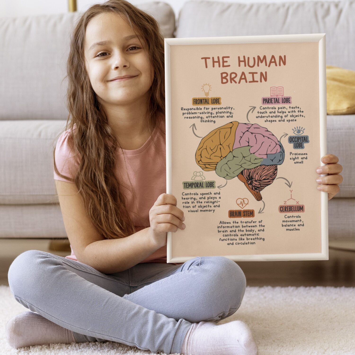 Understanding the human brain is essential for mental health awareness, education, and therapy. This beautifully designed brain anatomy poster breaks down the functions of key regions, including the frontal lobe, parietal lobe, occipital lobe, temporal lobe, cerebellum, and brain stem. Whether you’re a school psychologist, therapist, counselor, or educator, this printable is a valuable tool for explaining brain function in a clear and engaging way.