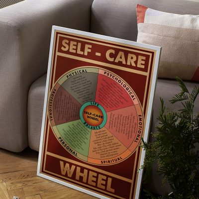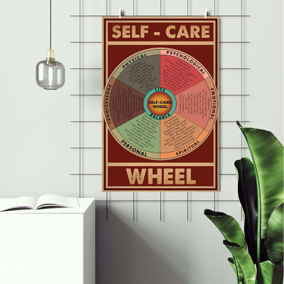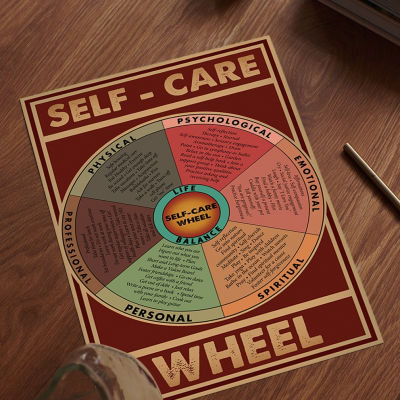 The Self Care Wheel Vintage Art Print identifies several aspects that can help us have a more balanced everyday life. It?s perfect for practicing self-care.