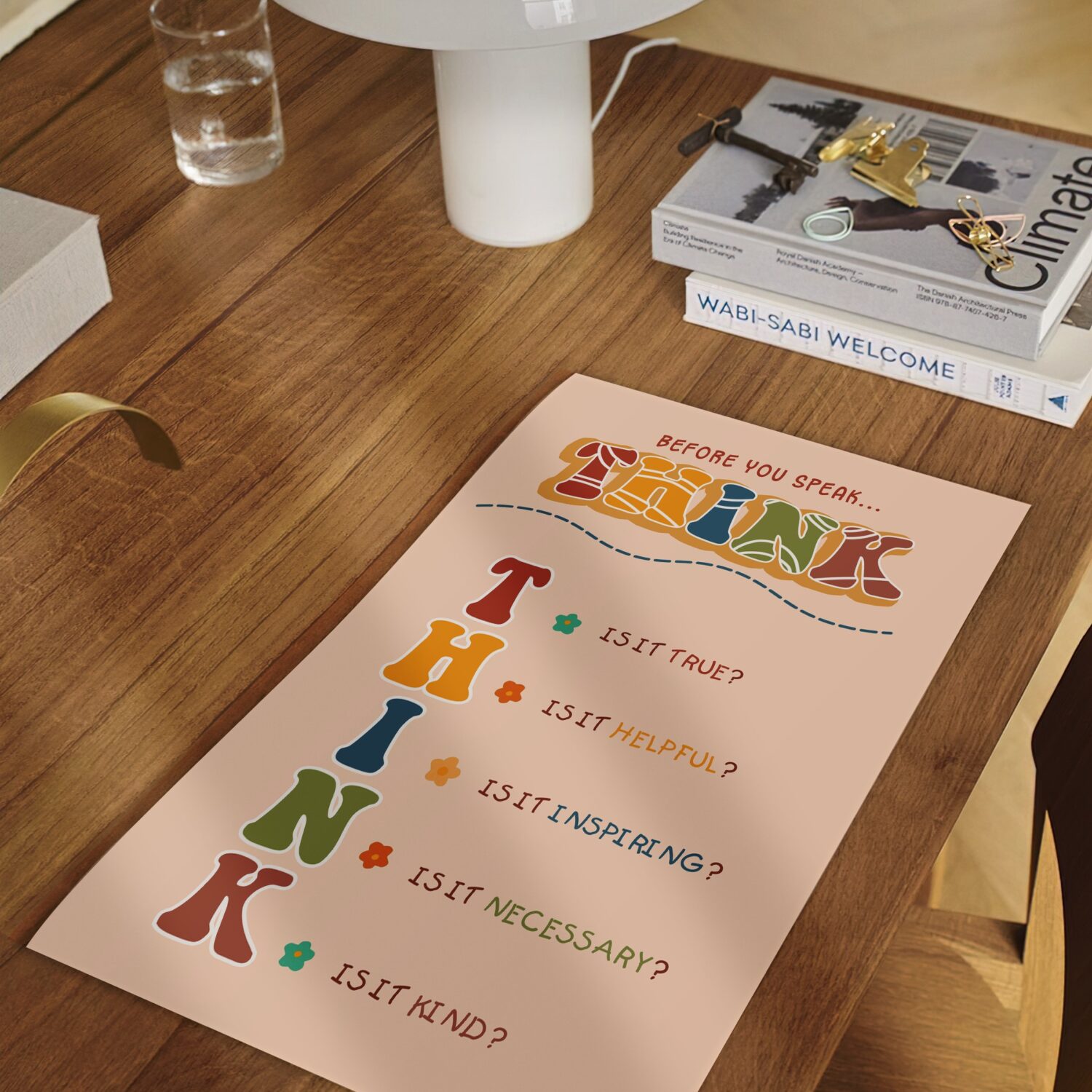Empower students and clients with a simple yet powerful reminder to speak with kindness and purpose. Download today and create a more mindful communication space.