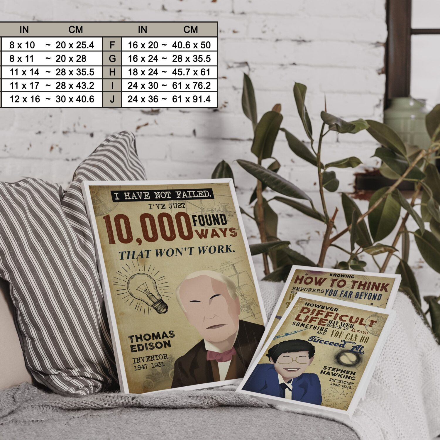 Thomas Edison Inspirational Scientists Quote Wall Art – Perseverance and Innovation