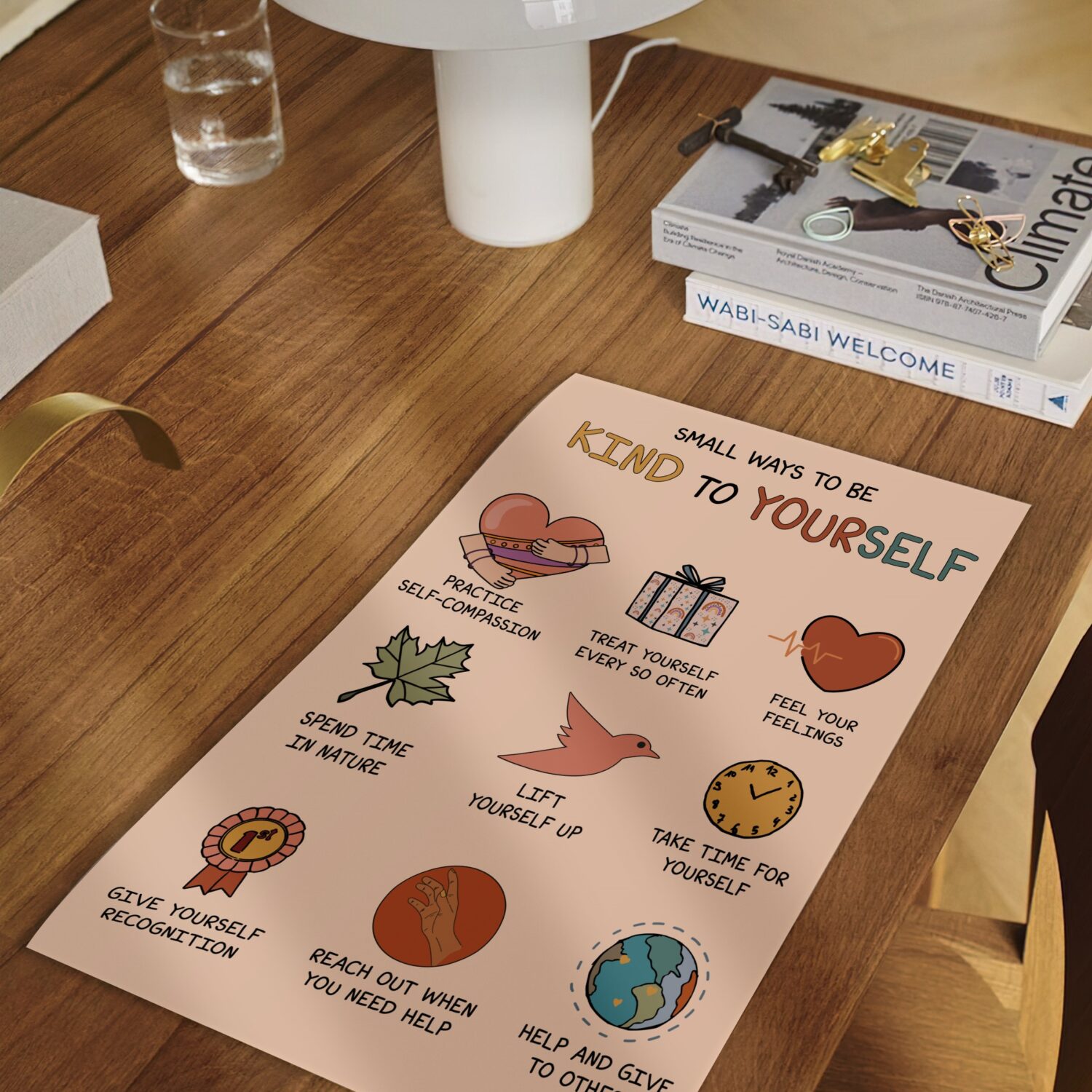 Make self-care a daily habit. Add this inspiring poster to your space today and remind yourself to be kind to you!