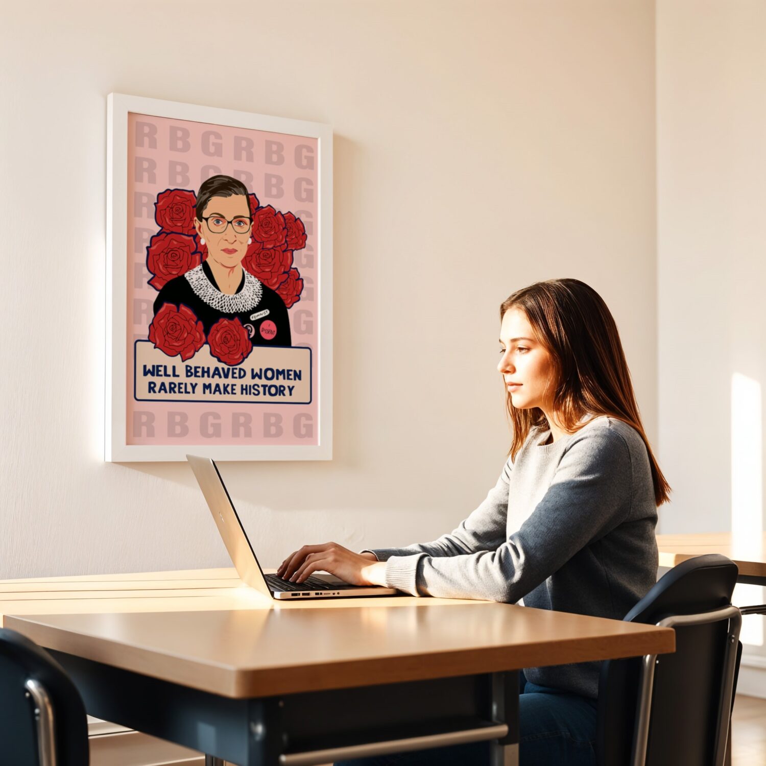 Well-Behaved RBG Empower Women motivational quote wall art brings an inspiring and artistic presence to your space.