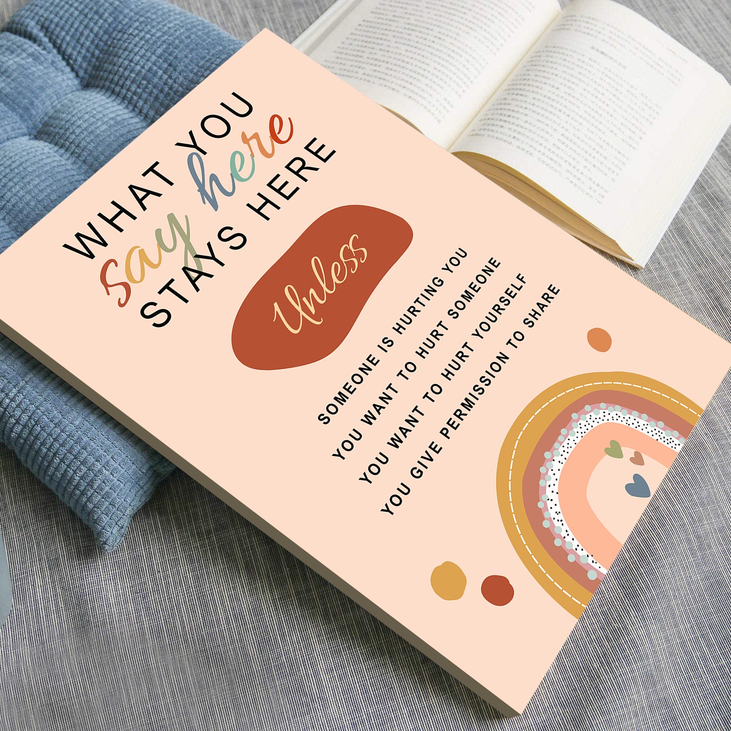 - Encourages Safe Conversations – Perfect for therapy offices, school counselors, and mental health professionals to establish confidentiality and build trust.