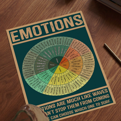 Promote mental health awareness and emotional intelligence with this beautifully designed Emotions Wheel Art Print. A powerful educational tool for SEL (Social-Emotional Learning), therapy, and self-reflection, this chart helps individuals recognize, understand, and express their feelings. Designed in a rich vintage art style with deep green and gold hues, it creates a grounding and insightful presence.