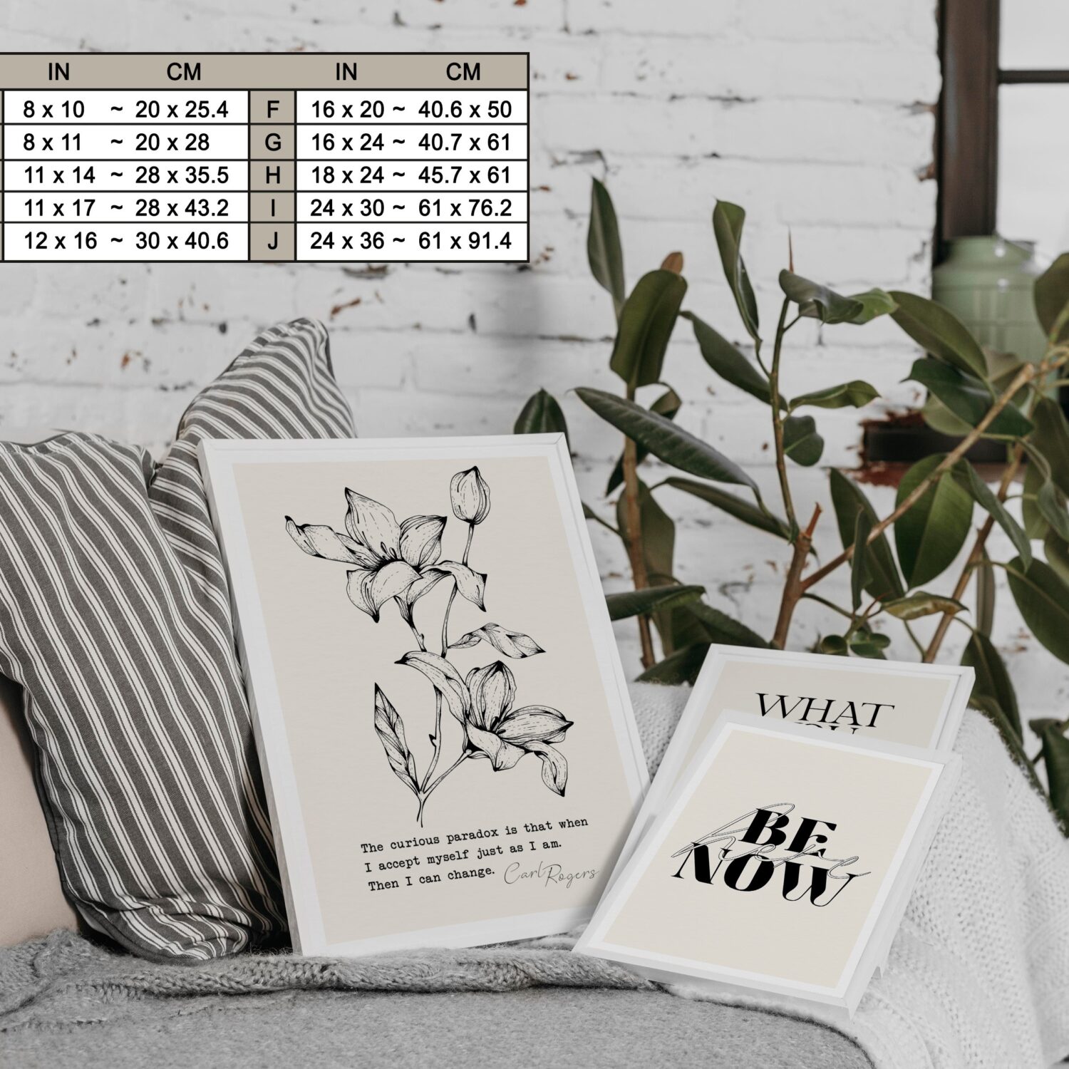 Embrace self-acceptance and personal growth with this beautifully designed mental health poster featuring an inspiring quote from Carl Rogers: “The curious paradox is that when I accept myself just as I am, then I can change.” Paired with an elegant black-and-white botanical illustration, this artwork blends wisdom and beauty seamlessly.