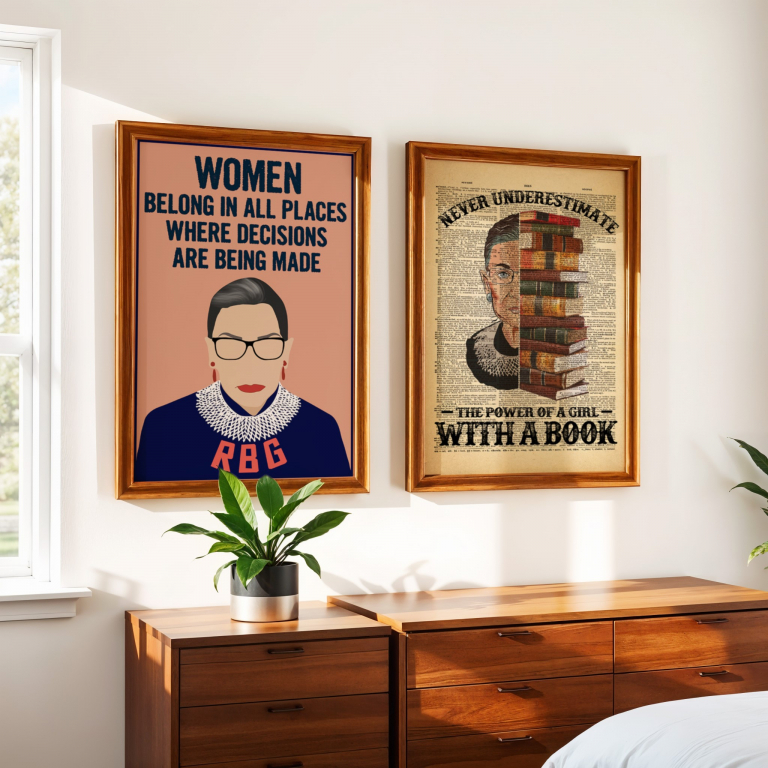Women Belong in All Places RBG Wall Art is perfect for anyone inspired by her groundbreaking contributions to feminism and human rights.