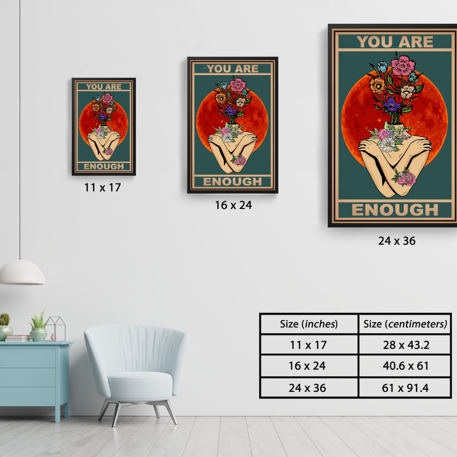 Embrace the power of self-love and mental health awareness with this stunning You Are Enough Printable. This artwork captures the essence of personal growth, featuring a figure cradling themselves with blooming flowers in place of a head, illuminated by a bold celestial backdrop. It symbolizes growth mindset, healing, and inner strength. With a touch of vintage art style and earthy hues, this piece serves as an uplifting reminder to practice positive affirmations and embrace self-compassion.