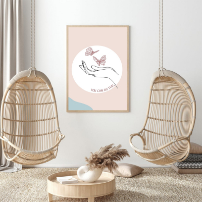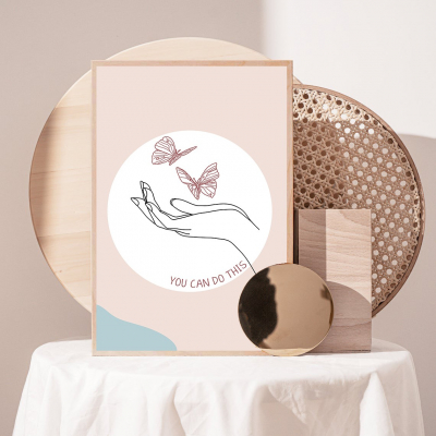 Embrace encouragement and resilience with this elegant mental health poster, featuring a delicate one-line drawing of a hand releasing butterflies into the air. Set against a soft pink mental health background, this artwork symbolizes transformation, hope, and freedom. Its minimalist style blends beautifully with preppy decor and aesthetic decor, creating a calming and inspiring atmosphere.